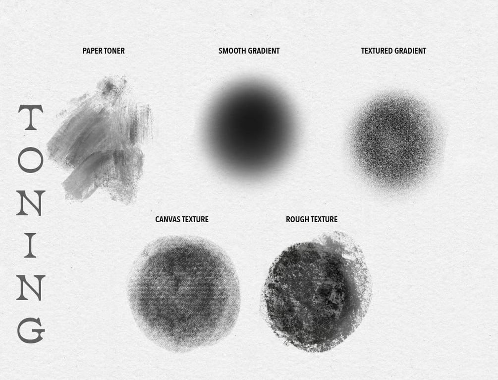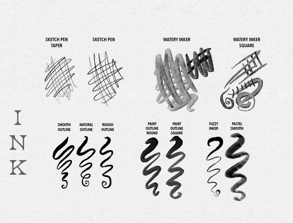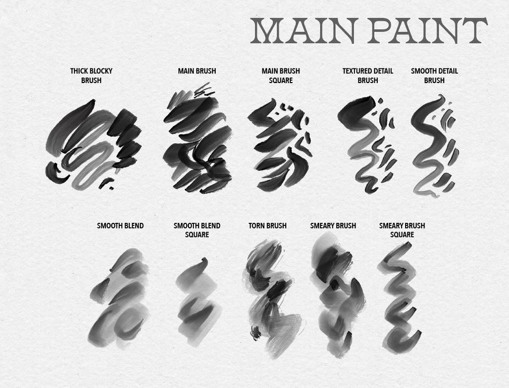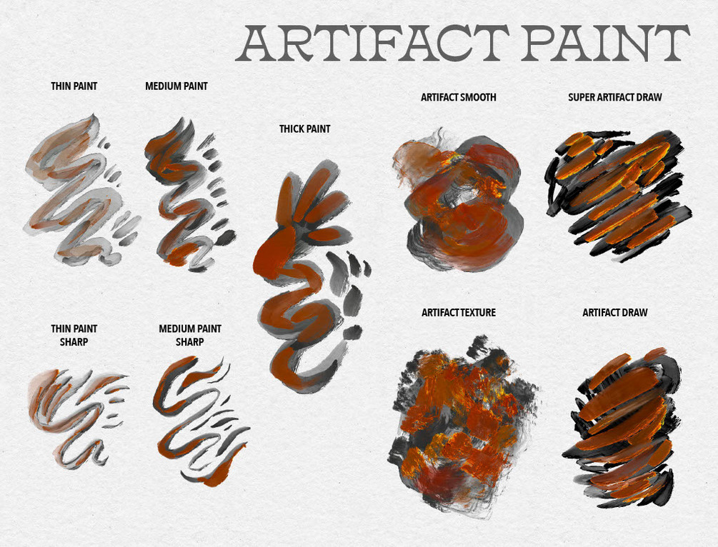 9 Artifact Brushes, designed to lift off the page and blend colors with texture
